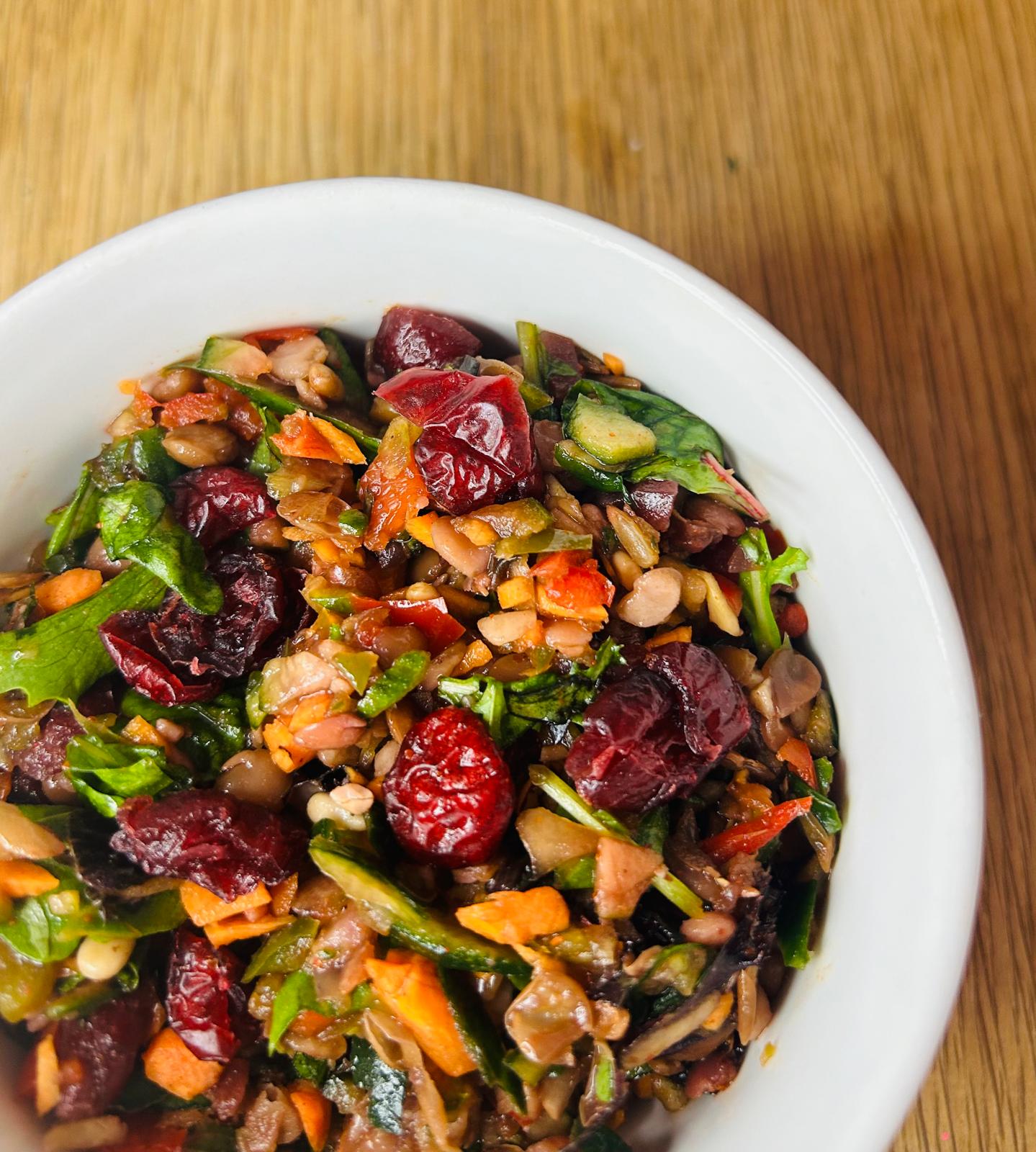 Is lentil salad boring? Absolutely not with or Rainbow Lentil Salad. Green lentils served with salad vegetables, carrots, mixed peppers and beetroot, topped with sunflower seeds and dry cranberries finished with a warming kick of chilli.