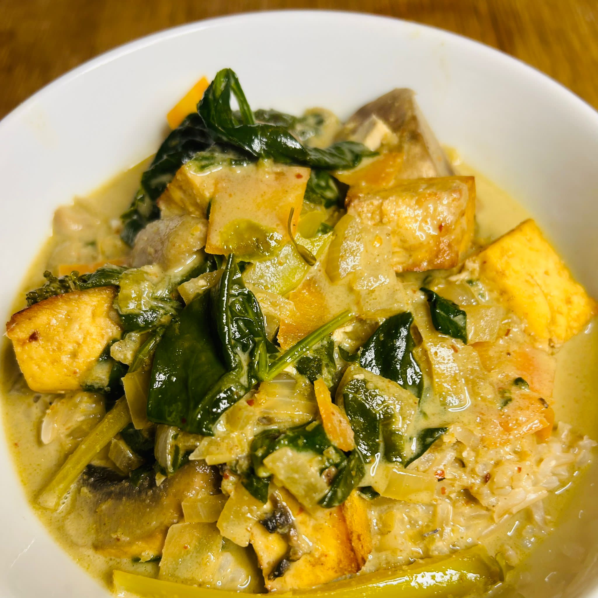 Fragrant and fresh, this classic dish gets a plant based whole food makeover. Firm tofu, broccoli and mushrooms slow cooked in coconut milk with green chilli and lemongrass. Served with Jasmine Rice.