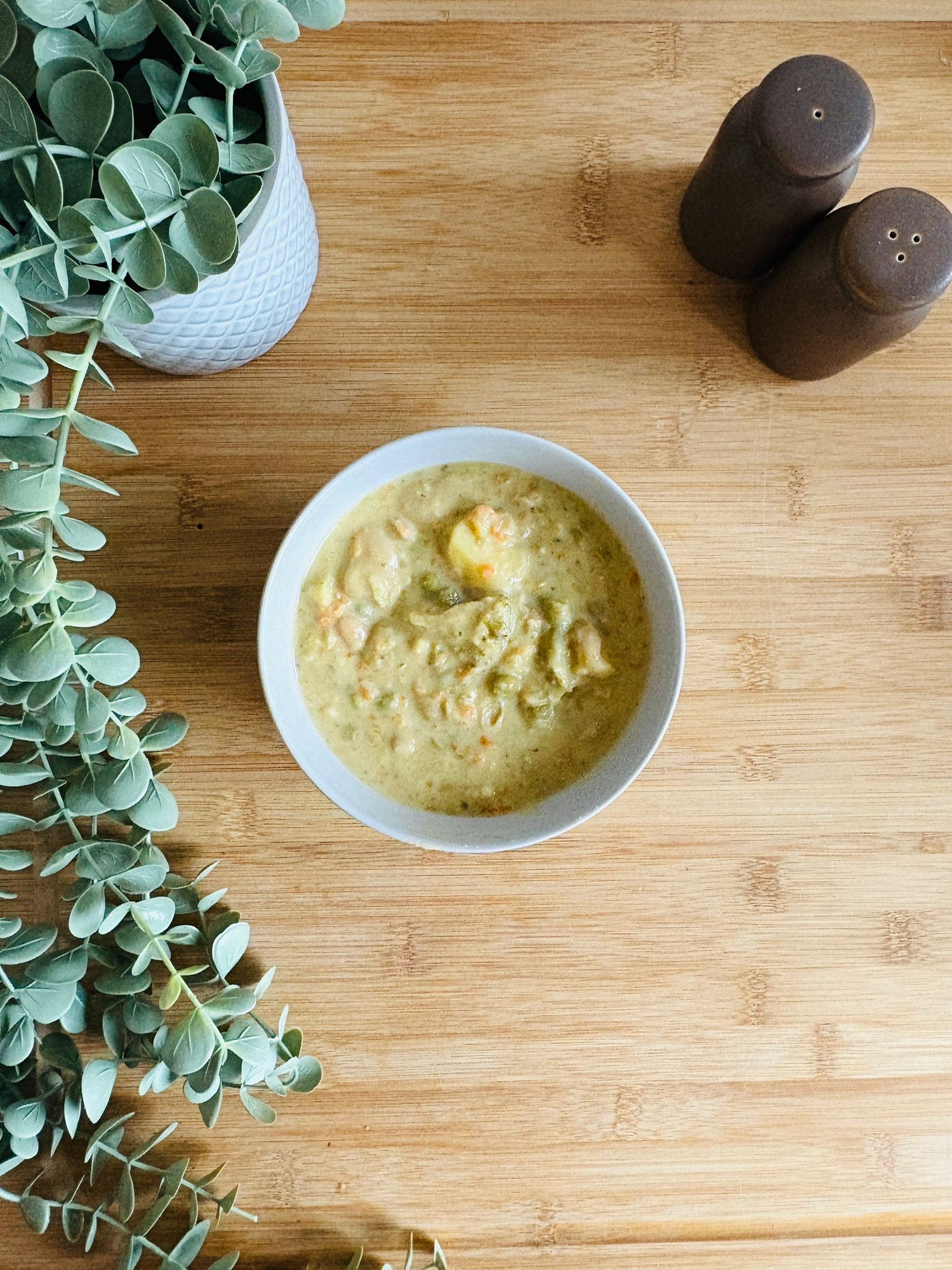 Ingredients: Celery, Carrot, Potato, Garlic, Cannellini Beans, Broccoli, Vegetable Stock, Butter Beans, Peas, Coconut Milk, Nutritional Yeast.