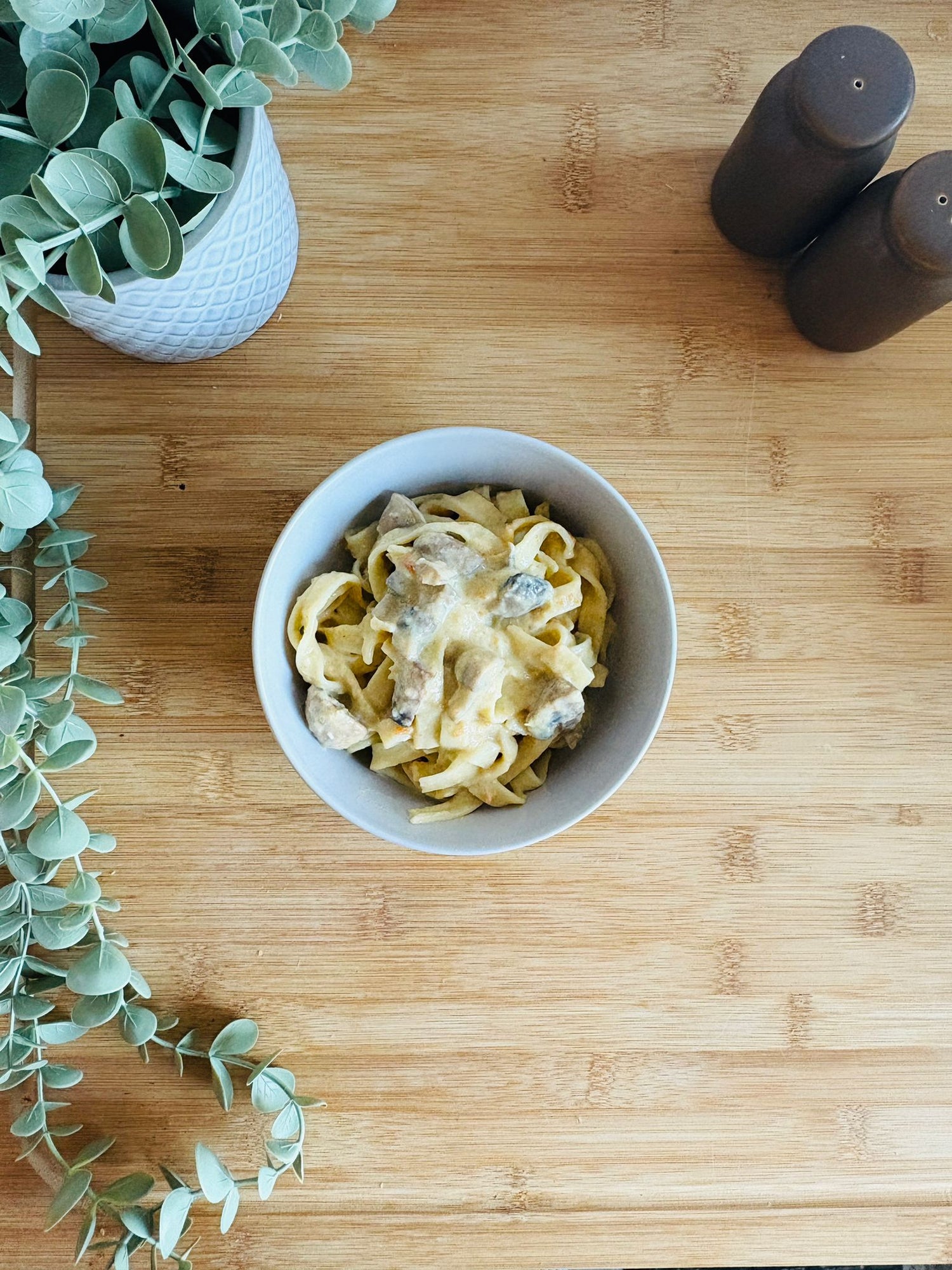 Description: Moreish tagliatelle with mushrooms in a rich and creamy sauce — indulgent and satisfying.
