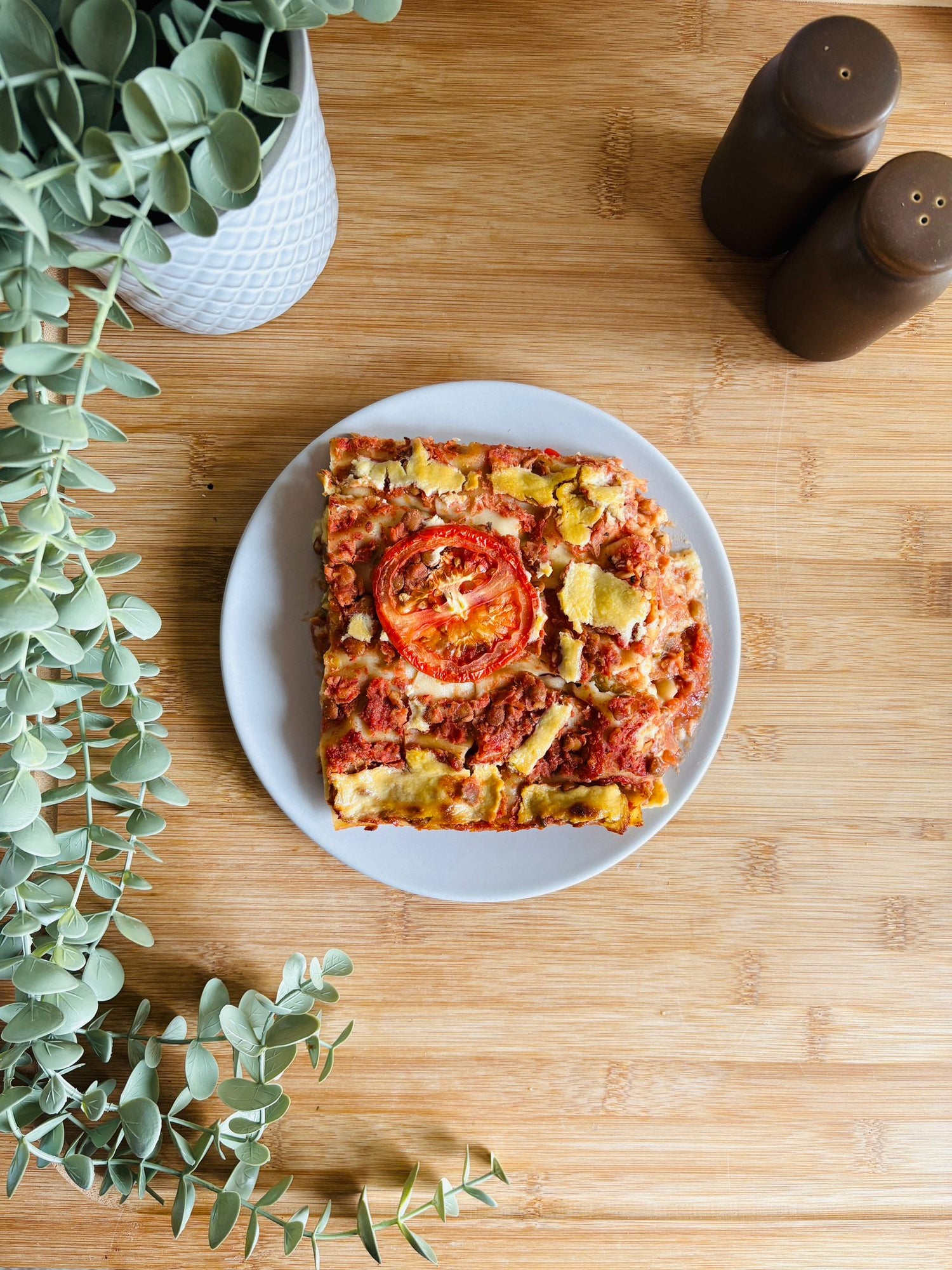 Ingredients: Celery, Carrot, Garlic, Tomatoes, Red Pepper, Vegetable Stock, Green Pepper, Passata, Parsley, Basil, Bay Leaf, Green Lentils, Oregano, Wholewheat Lasagne, Cauliflower, Cloves, Nutritional Yeast, Oats, Chicory Root Fibre, Oat Milk.